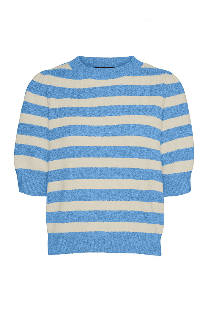 Associé au denim, le pull à rayures bleues Vero Moda apporte une touche dynamique et lumineuse. Sa coupe regular, son col rond et ses poignets côtelés offrent un tombé naturel et confortable.