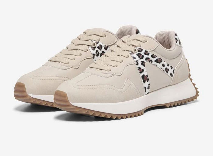 Enfin, les sneakers beige à bandes léopard signées Only viennent apporter une touche mode et audacieuse. À la fois confortables et originales, elles dynamisent la silhouette et offrent une allure moderne, idéale pour un look du quotidien sans effort : 42€ au lieu de 59,99€
