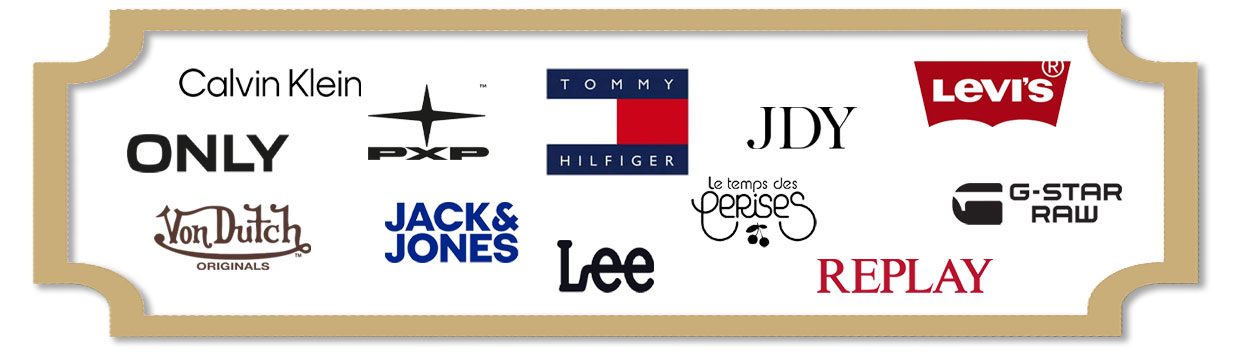 Levi’s, G-Star, Tommy Hilfiger, Calvin Klein, Jack & Jones, Only, Replay, Lee, Schott, et bien d’autres encore.