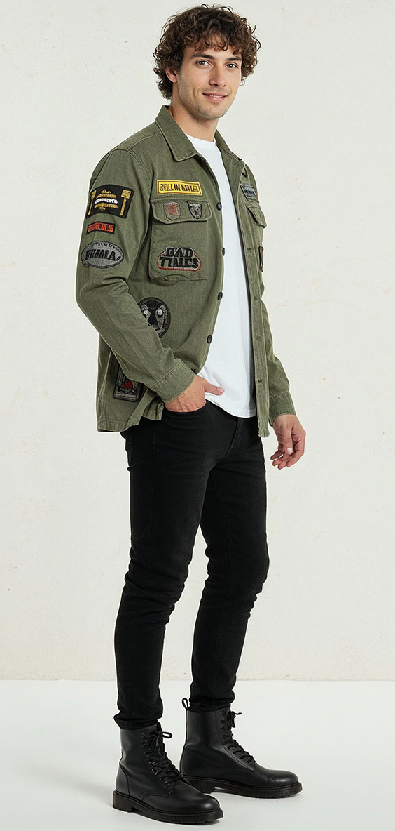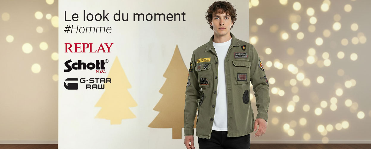 La pièce phare de cette silhouette, c’est cette chemise kaki Replay, reconnaissable à son design authentique et à ses patchs inspirés de l’univers militaire. Elle impose un style immédiatement affirmé, entre modernité et attitude vintage. Polyvalente, elle se porte aussi bien ouverte comme une surchemise que boutonnée pour un rendu plus structuré. Son tissu robuste et confortable en fait une alliée idéale des journées fraîches de décembre.