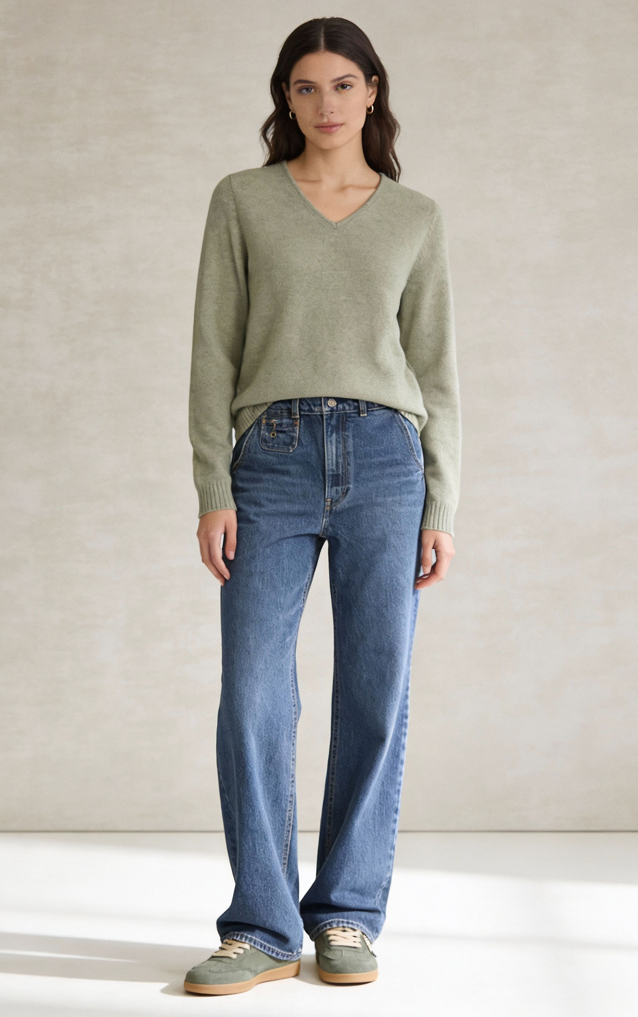 Cette silhouette féminine mise sur une élégance naturelle, subtile et résolument actuelle. Elle s’adresse à celles qui aiment les looks équilibrés, à la fois tendance, confortables et faciles à porter au quotidien, sans jamais renoncer au style. Une tenue pensée pour traverser la saison avec légèreté, en jouant sur des teintes douces et des coupes iconiques.