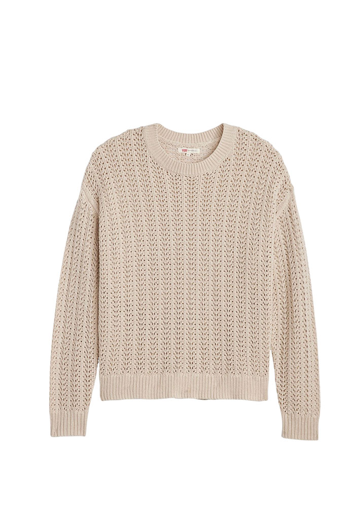 Sous la veste, le pull beige Levi’s apporte douceur et luminosité à l’ensemble. Sa couleur naturelle illumine le visage et crée un contraste élégant avec le denim. Confortable et intemporel, il s’impose comme un allié du quotidien, parfait pour composer un look casual chic sans effort.