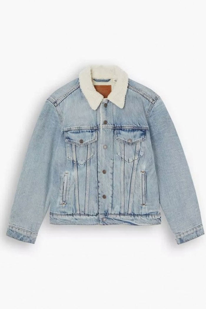 La pièce phare de ce look est sans conteste la veste en jeans Levi’s avec col sherpa. Véritable indispensable du dressing, elle revisite le denim classique avec une touche cocooning grâce à son col doublé. À la fois robuste et féminine, elle structure la silhouette tout en apportant une protection idéale contre le froid. Facile à porter, elle s’associe aussi bien à des looks urbains qu’à des tenues plus décontractées.
