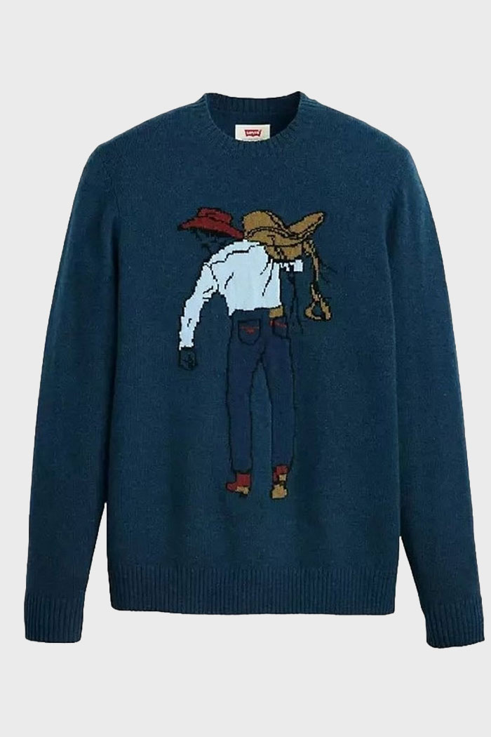 Au cœur de ce look, le pull Levi’s bleu s’impose comme un indispensable. Confortable et facile à porter, il apporte une touche casual chic grâce à sa maille douce et son visuel graphique discret mais affirmé. Parfait pour la mi-saison comme pour l’hiver, il se porte aussi bien seul que sous une veste.