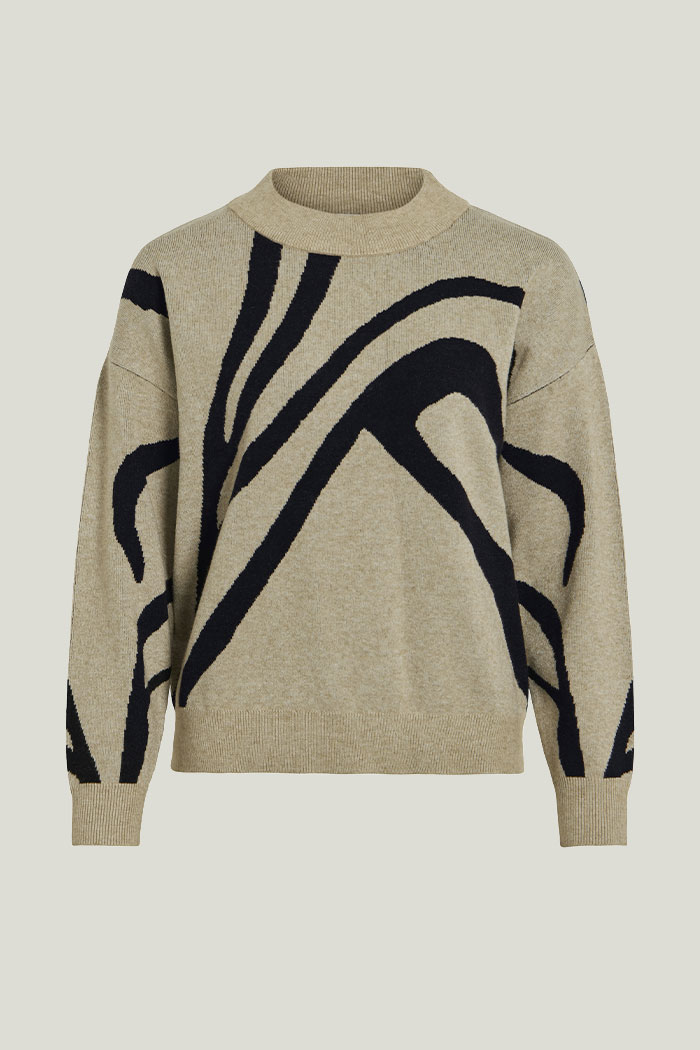 Porté sous la doudoune, le pull beige Vila en maille à motifs noirs apporte une note graphique et chaleureuse à la silhouette. Sa coupe regular, son col rond et ses épaules tombantes créent une allure décontractée et actuelle. Facile à associer, il réchauffe le look tout en ajoutant du contraste et du relief à l’ensemble.