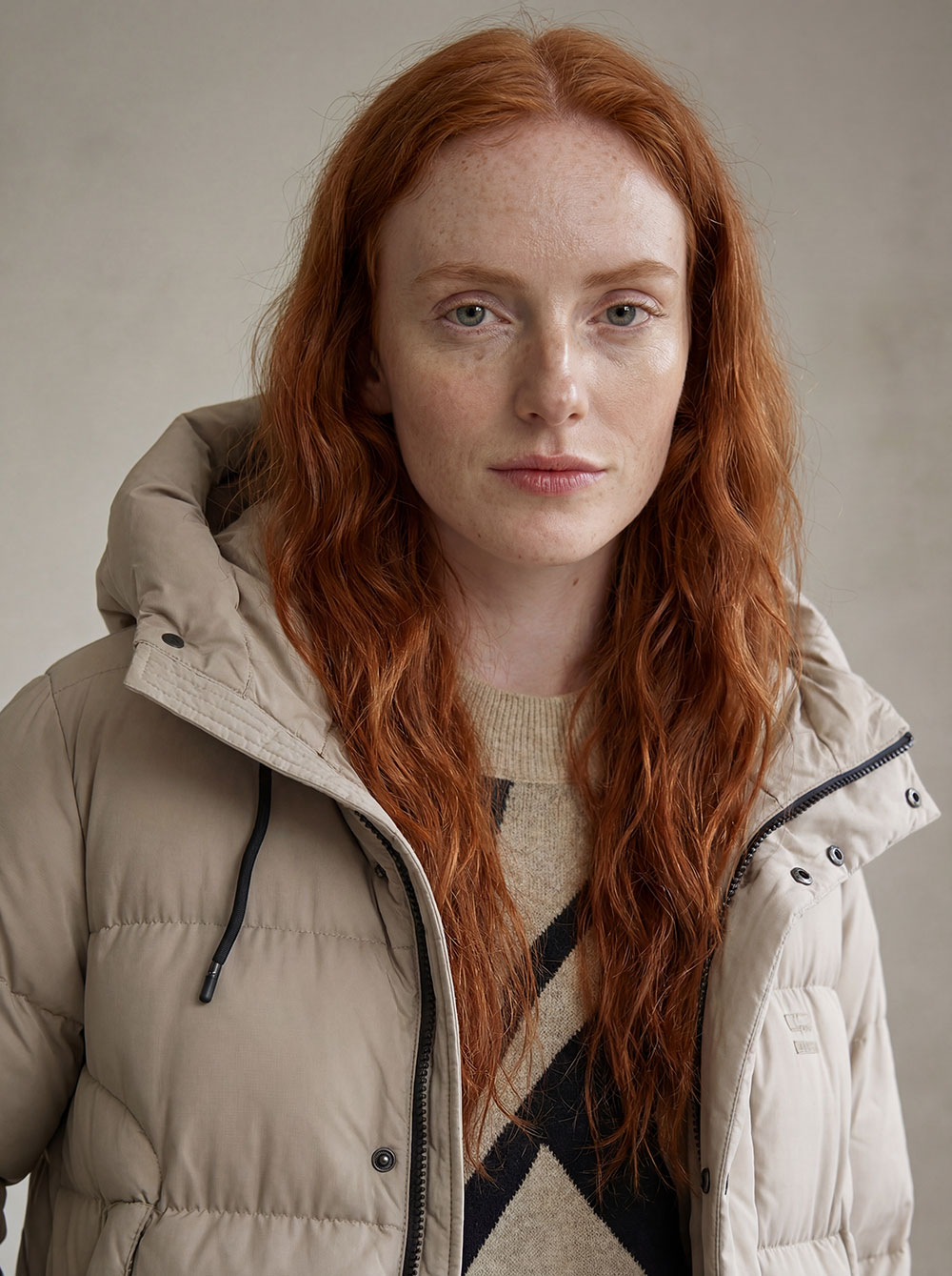 Pièce centrale de la tenue, la doudoune G-Star beige mi-longue s’impose par son design épuré et sa fonctionnalité. Sa coupe regular structure la silhouette sans la contraindre, tandis que sa capuche avec cordon de serrage et sa fermeture zippée dissimulée sous un rabat-tempête à boutons-pression assurent protection et élégance.