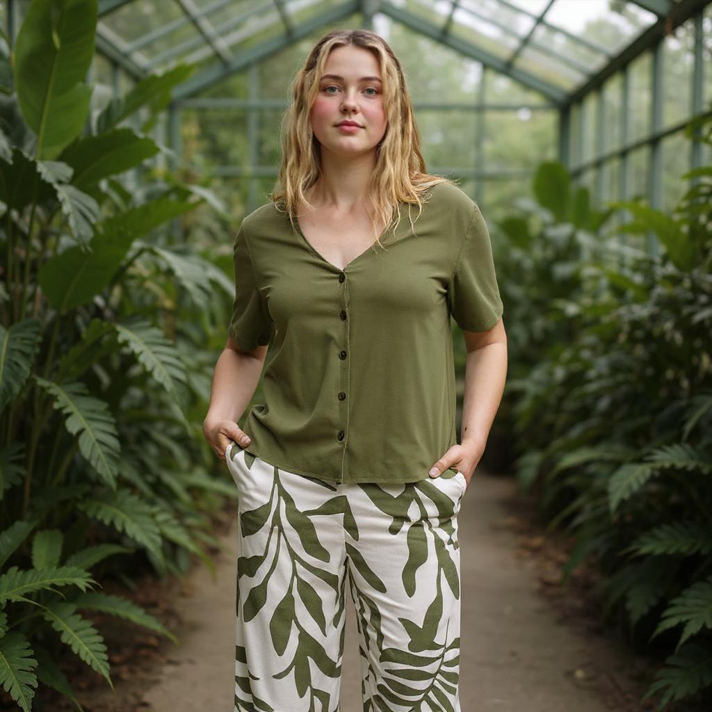 Confectionnée en lin et viscose, sa couleur vert-thé apporte une touche de fraîcheur à votre tenue. Que ce...