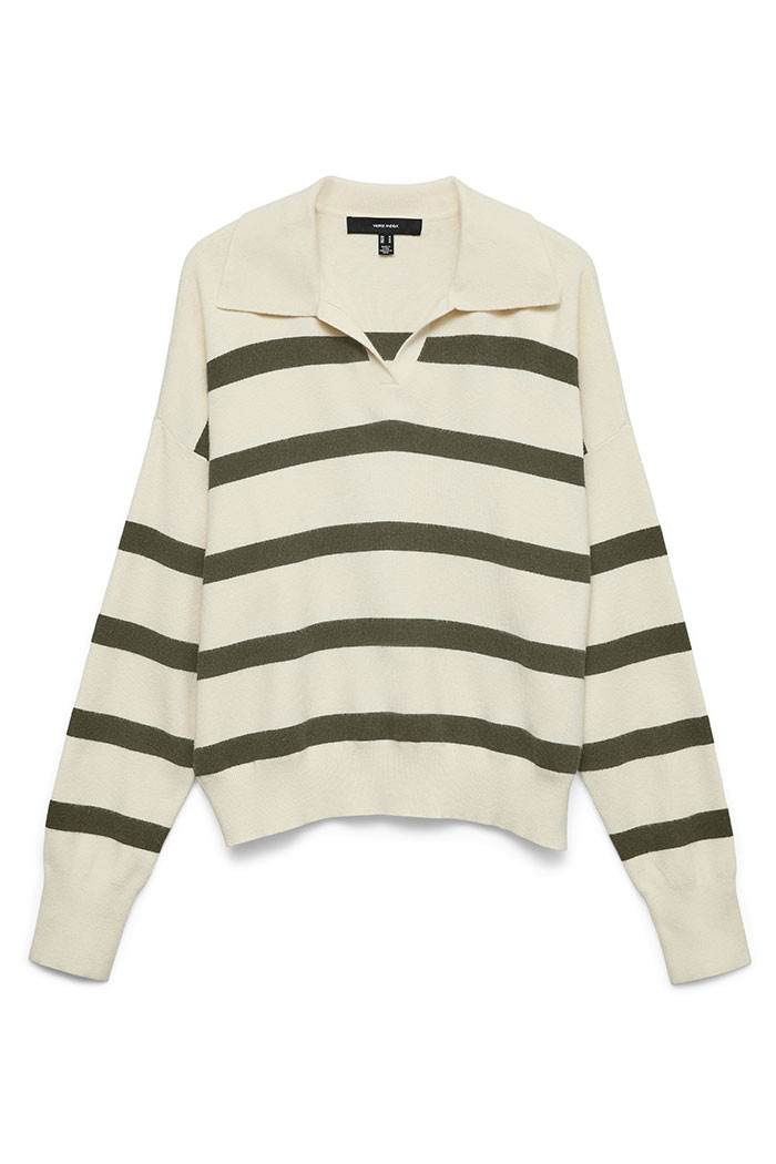 Les rayures kaki apportent une touche tendance à ce magnifique pull Maria beige signé Vero Moda.