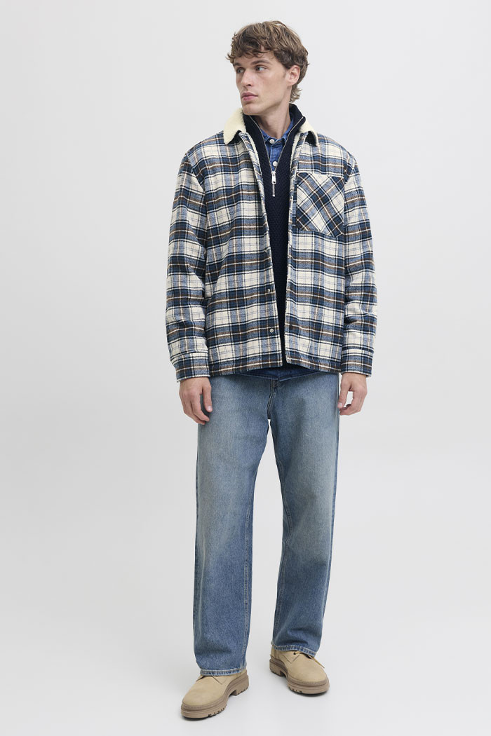 Découvrez la nouvelle Surchemise Teddy à carreaux beige et bleu pour homme de la célèbre marque Jack & Jones !