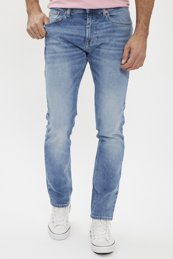 Le jeans slim scanton bleu délavé pour homme de Tommy Hilfiger, un essentiel de la mode masculine.