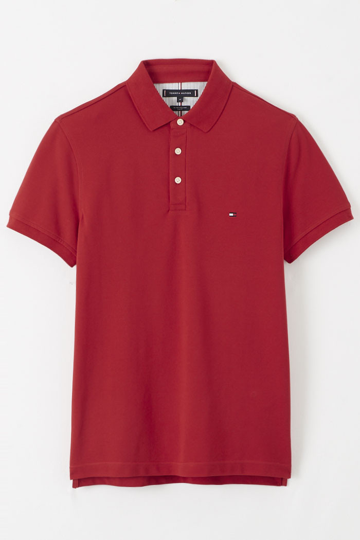 Polo rouge manches courtes coton mélangé Tommy Hilfiger