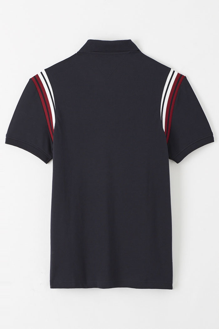 Spécialiste du vestiaire casual chic, Tommy Hilfiger est une marque mythique qui s’est appropriée le look classique des vêtements des universités américaines pour le transcrire dans une ligne de qualité. Simples et raffinées, ces pièces reflètent l’ambiance sportive et élitiste des vacances sur la très chic côte est. Ce polo marine à manches courtes se distingue pour son look sport très marqué. De larges bandes en côtes rouges et blanches soulignent les emmanchures dans un style très graphique, mais toujours classique. Ce polo Tommy Hilfiger a été conçu dans un piqué en coton bio plus écologique et respectueux de l’environnement. Il est confortable grâce à sa forme régulière et son tissu aéré qui vous maintient au frais toute la journée. Vous apprécierez les belles finitions qui témoignent de sa qualité : - Col polo traditionnel - Gorge aux boutons ton sur ton - Bords côtes au col et aux manches - Logo blanc et rouge sur la manche gauche - Etiquette avec logotype blanc sur la poitrine Adoptez le polo marine Tommy Hilfiger avec des vêtements décontractés et modernes qui renforceront son look sport, comme un bermuda en jean ou un pantalon cargo.